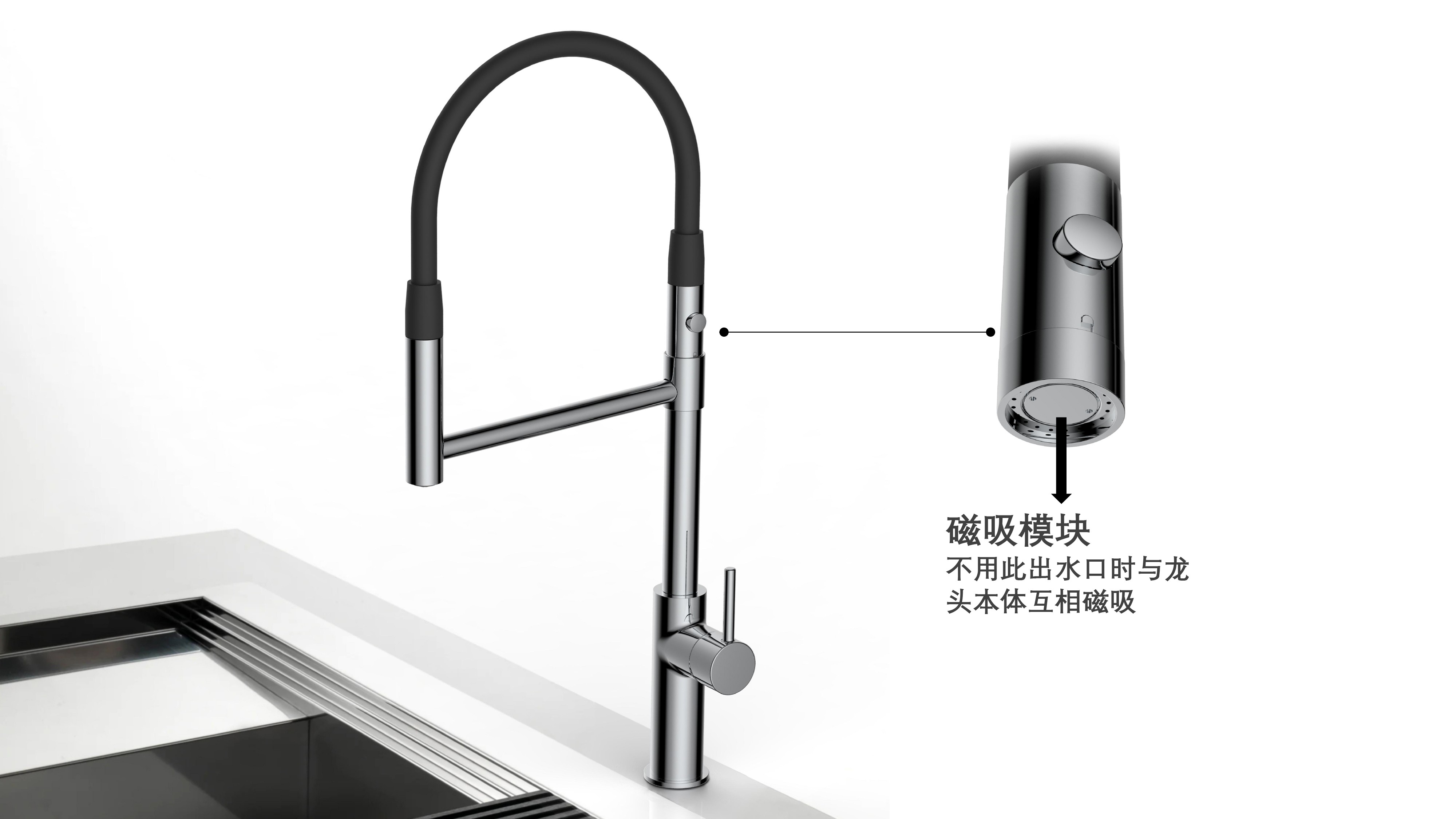 cUPC/ NSF61/ AB100/ NSF372/ Lead Free/ ADA認(rèn)證;磁吸抽拉廚房龍頭;磁吸抽拉頭可旋轉(zhuǎn)展開(kāi)使用,不用時(shí)旋轉(zhuǎn)回原位磁吸固定;兩種出水可根據(jù)需求切換
